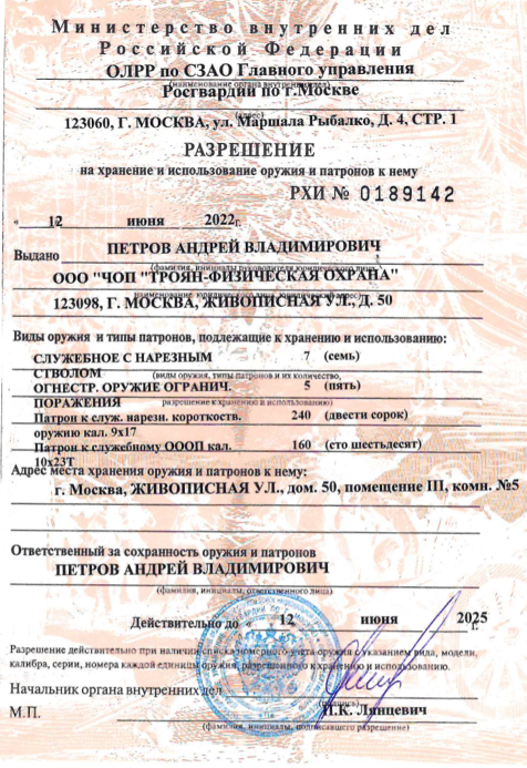 Сотрудник по навыкам соответствует тарифу "Cтандартный", отличается наличием огнестрельного оружия